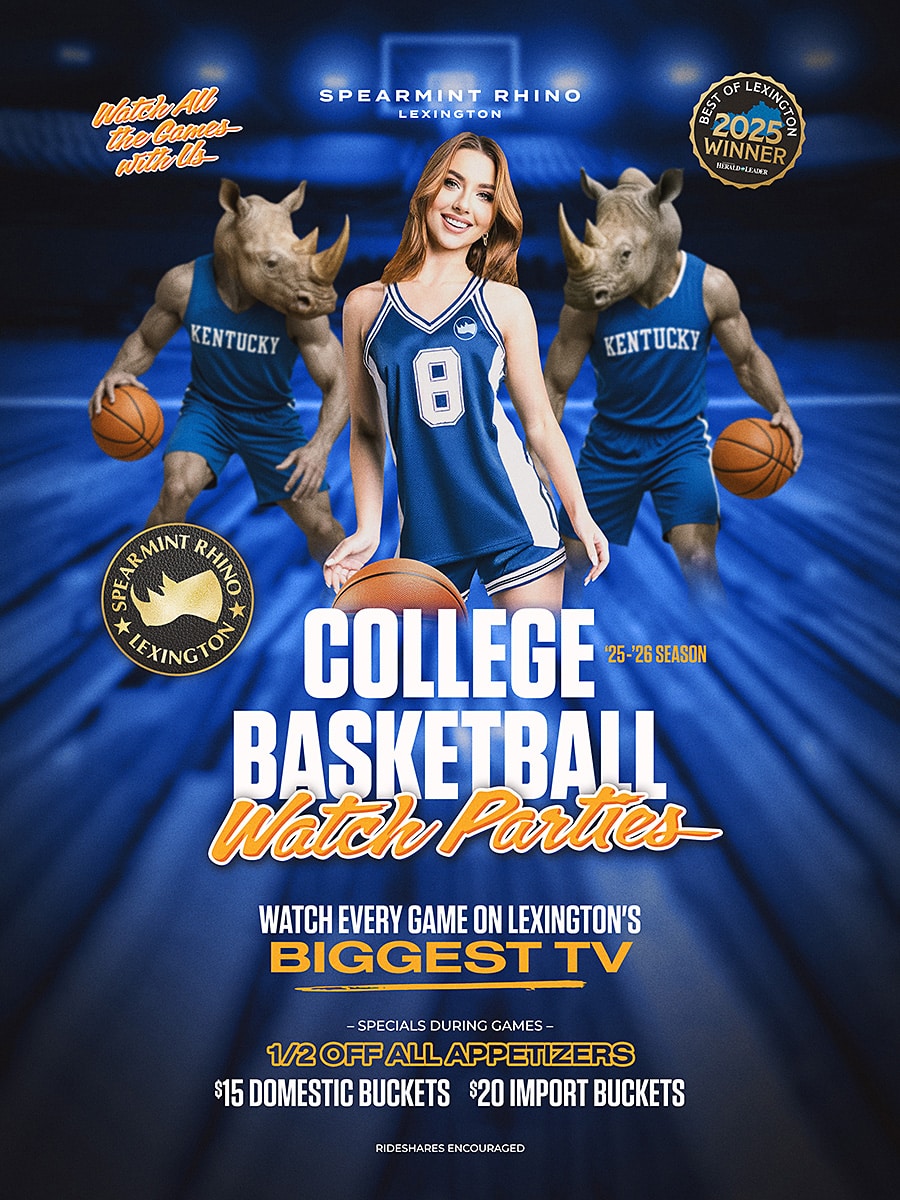 2025–2026 Season Spearmint Rhino Lexington Catch every game on Lexington’s biggest TV! Specials During Games: ½ Off All Appetizers $15 Domestic Buckets $20 Import Buckets