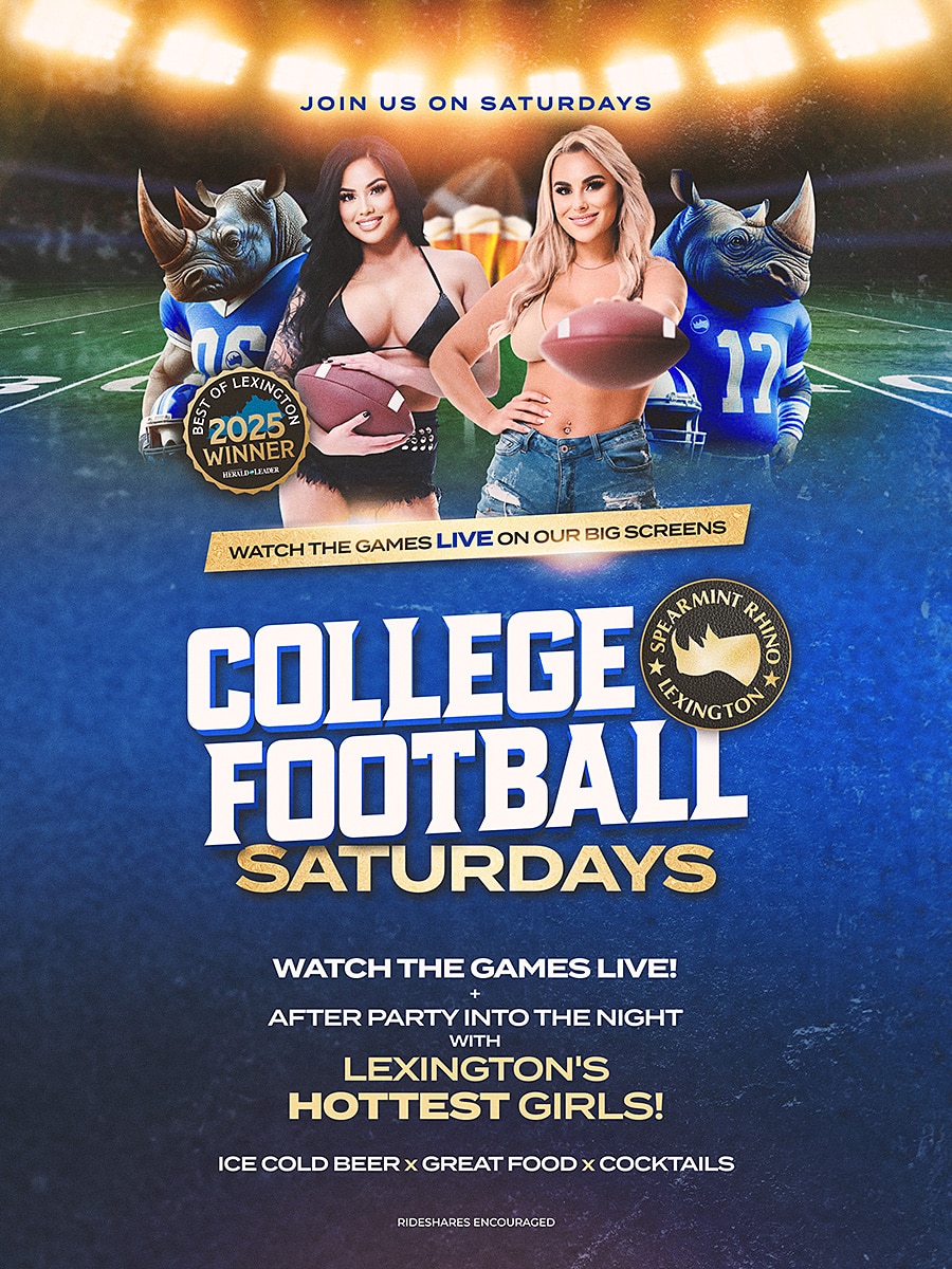 Every Saturday Watch the games live on the big screens at Spearmint Rhino Lexington After party into the night with Lexington’s hottest girls! Ice cold beer × Great food × Cocktails